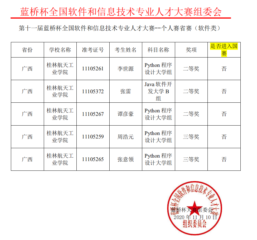 在由工业和信息化部人才交流中心主办的第十一届蓝桥杯全国软件和信息技术专业人才大赛中,beat365官方网站学子在喜获佳绩,8名参加人员中5名同学获得奖项,产生二等奖3名,三等奖2名。